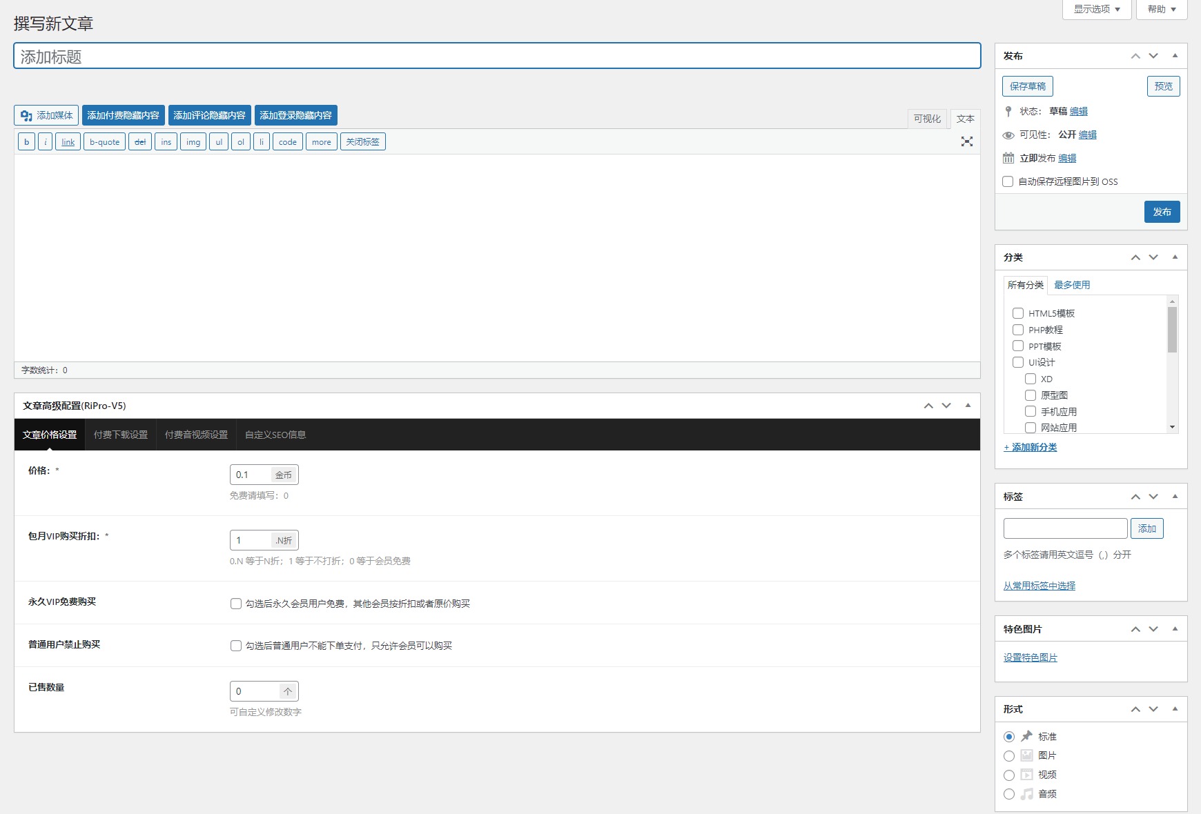 RiPro主题全新V5版本(原RiPro-V2升级版),是一个优秀且功能强大、速度极快,易于管理、现代化的WordPress虚拟资源商城主题。支持首页模块化布局和WP原生小工具模块化首页可拖拽设置,让您的网站设计体验更加舒适。同时支持了高级筛选、自带会员生态系统、超全支付接口等众多功能,无需依赖插件即可实现。此外,主题还支持卡密、充值、站内币、会员、推广佣金、统计、自定义币种、自定义会员标识、支持自定义SEO信息等多种功能,为您的网站提供更加完整的解决方案。