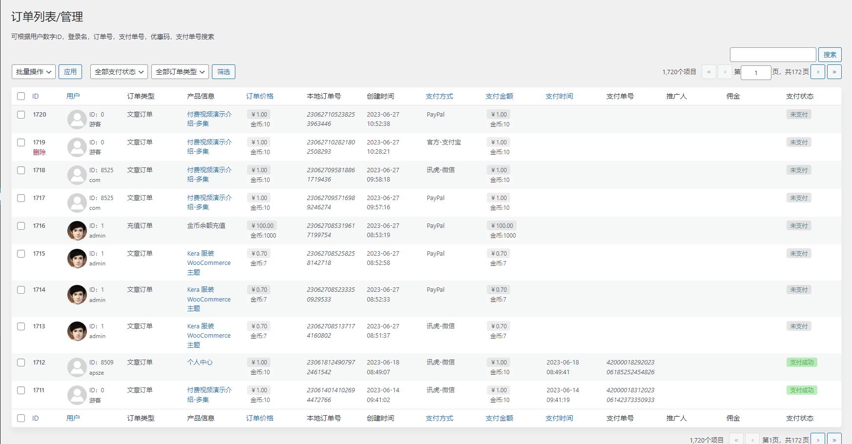 - 支持主流支付接口(支付宝/微信/USDT/PayPal)
